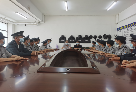 郝捷结合部门工作提出保卫工作应在履行自己的职责过程中达到服务育人、管理育人的目的与效果,实现保卫工作与校园文化和服务育人、管理育人理念有机融合,努力突破安保人员文化层次偏低、管理理念陈旧、职业认同感不强“三个壁垒”,着力打造安保队伍建设制度文化、精神文化、行为文化、业务文化,实现安保人员 “外树形象、内强素质”工作要求。陈欣围绕安保人员的工作礼仪规范、在岗纪律规定、突发情况应变处置等方面提出了具体要求。