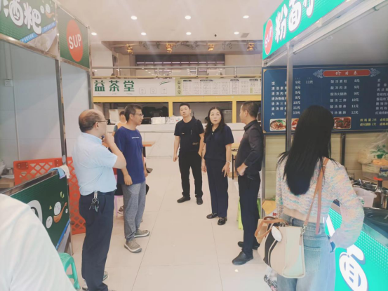 2023年8月25日下午,安顺学院殷红敏副校长在后勤处处长陈宇、副处长卢书章、保卫处副处长陈欣、食堂科科长张振红、消防科副科长禄福陪同下到食堂、商铺进行工作调研。