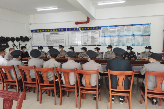 郝捷结合部门工作提出保卫工作应在履行自己的职责过程中达到服务育人、管理育人的目的与效果,实现保卫工作与校园文化和服务育人、管理育人理念有机融合,努力突破安保人员文化层次偏低、管理理念陈旧、职业认同感不强“三个壁垒”,着力打造安保队伍建设制度文化、精神文化、行为文化、业务文化,实现安保人员 “外树形象、内强素质”工作要求。陈欣围绕安保人员的工作礼仪规范、在岗纪律规定、突发情况应变处置等方面提出了具体要求。