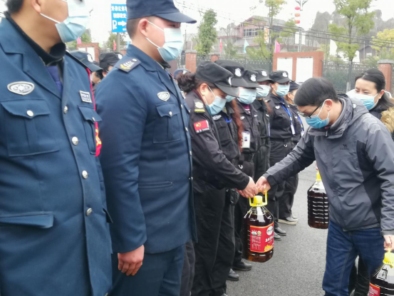 慰问中校领导向安保人员发放了慰问品,并请他们转达学校领导对他们家人的问候。