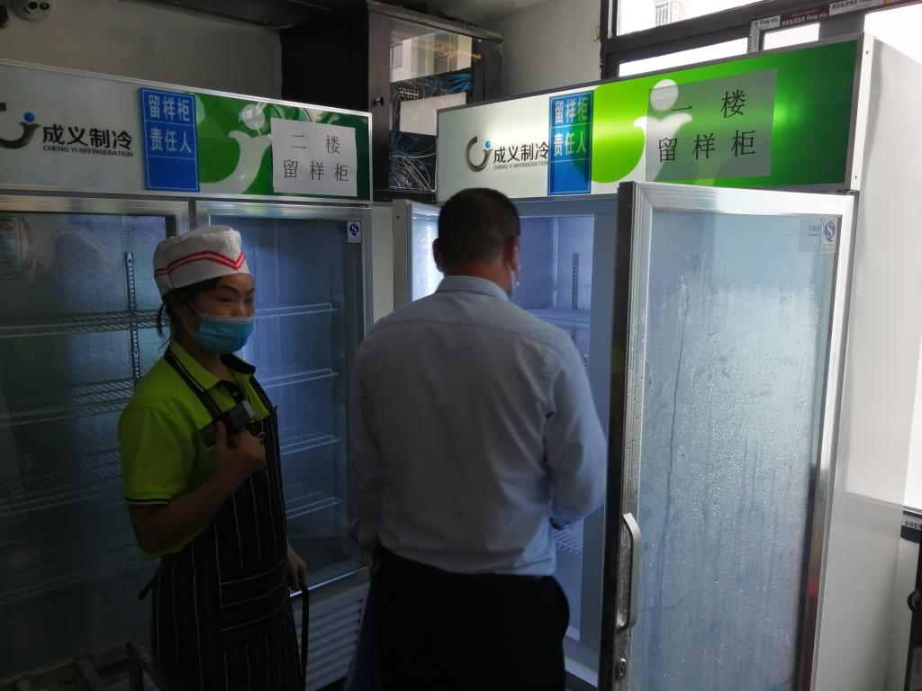 在检查中针对每日食品留样柜进行了随机抽查,并对操作间是否规范操作、物资储备间是否摆放整齐、残羹回收处是否干净整洁、食堂各项消防设施是否完好、二期在建工程的消防设施是否缺失进行了全方位的检查。此次检查,郝捷副处长要求食堂需严格按照规范化进行厨房操作,并将食品安全责任制度落实到位,保证食品卫生安全,并注重消防设施器材的维护、使用工作。