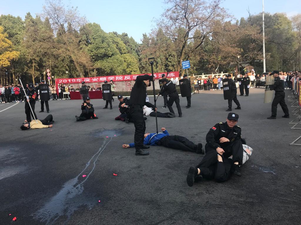 为切实做好校园安全,加强师生面对突发事件防范意识,提高面对突发事件的合理处置,自护自救及时有效的逃生避险的能力,最大限度减少突发恐怖事件对全校师生带来的人员伤害,确保学校内部的安全和师生的人身安全,2019年12月13日上午9点40分,“2019年度安顺学院防恐防暴演练”在安顺学院大门处顺利拉开帷幕。