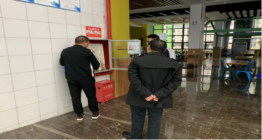 随后,又详细检查了消防设施情况。检查发现,食堂存在灭火器太脏、私拉乱接电源、未安装消防疏散指示牌、消防疏散指示牌不亮、餐桌遮挡灭火器、筷子消毒车遮挡消火栓、消火栓无水、食堂餐桌摆放不合理,未留出安全通道间距、部分安全出口锁闭、过道堆放物品堵塞安全通道、强弱电井堆放物品。检查完及时向后勤处反馈情况,要求及时整改,把学校食品安全和消防安全工作做好做实,为广大师生的健康和生命安全提供有力保障。