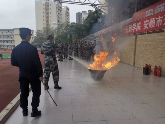 首先,开发区消防大队官兵在足球场为全体新生讲解如何用灭火器扑救初期火灾并作现场示范,还请新生代表们亲身体验,熟悉掌握灭火要领,进一步深化了培训效果。培训结束后,全体新生在安顺军分区官兵、保卫处、学生处干部的组织下,快速有序的移动到新教楼集结,开展应急逃生演练。